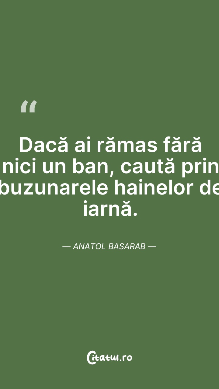 Dacă ai rămas fără nici un ban, caută prin bu ... Citește tot citatul >