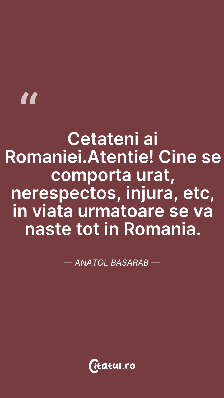 Cetateni ai Romaniei.Atentie! Cine se comport ... Citește tot citatul >