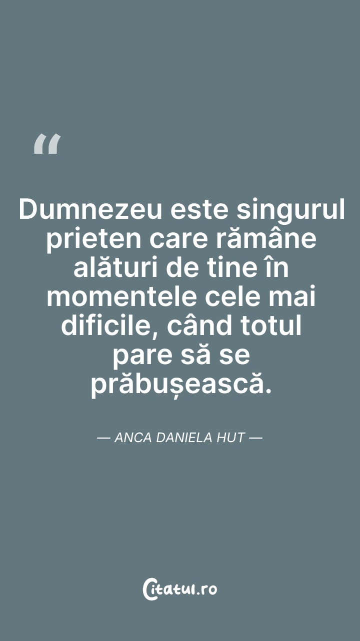 Dumnezeu este singurul prieten care rămâne al ... Citește tot citatul >