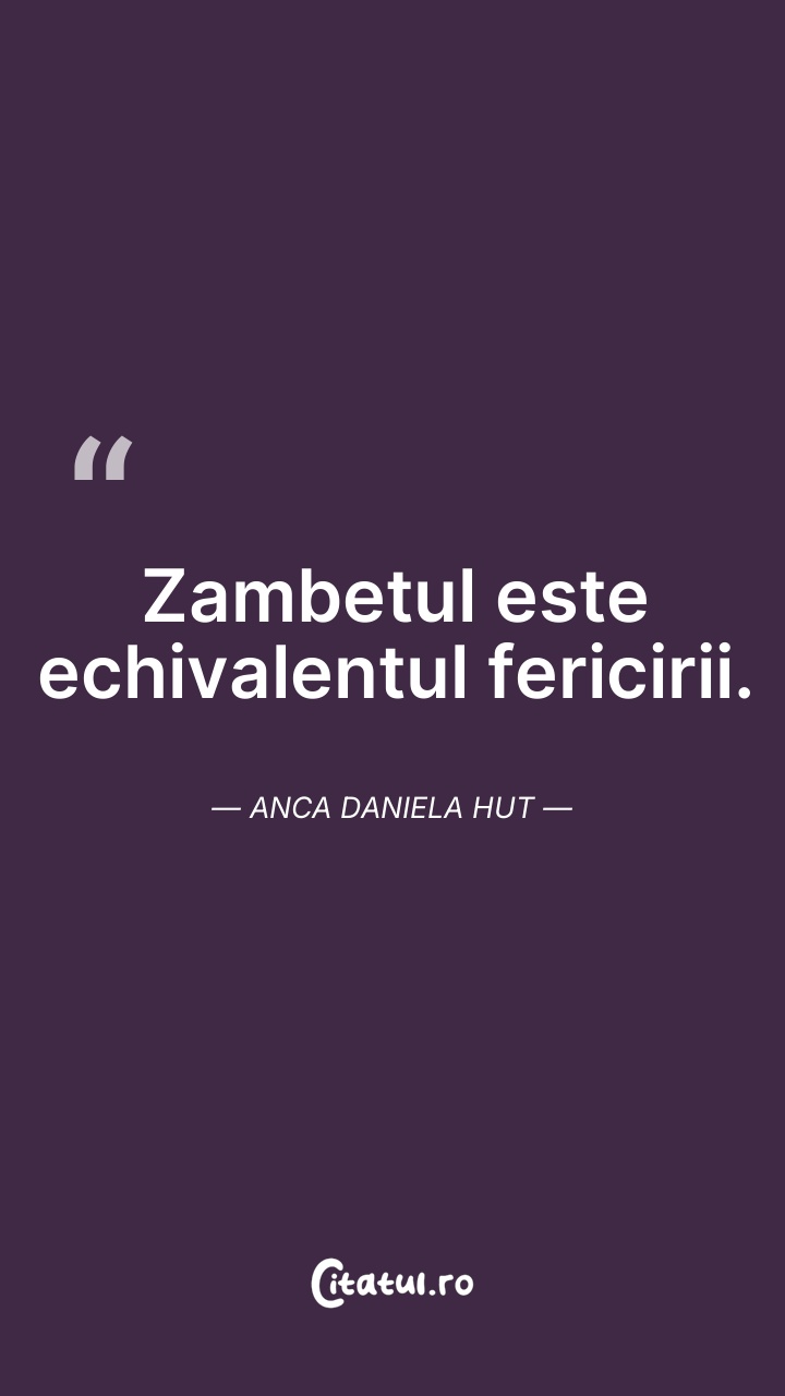 Zambetul este echivalentul fericirii. Anca Da ... Citește tot citatul >