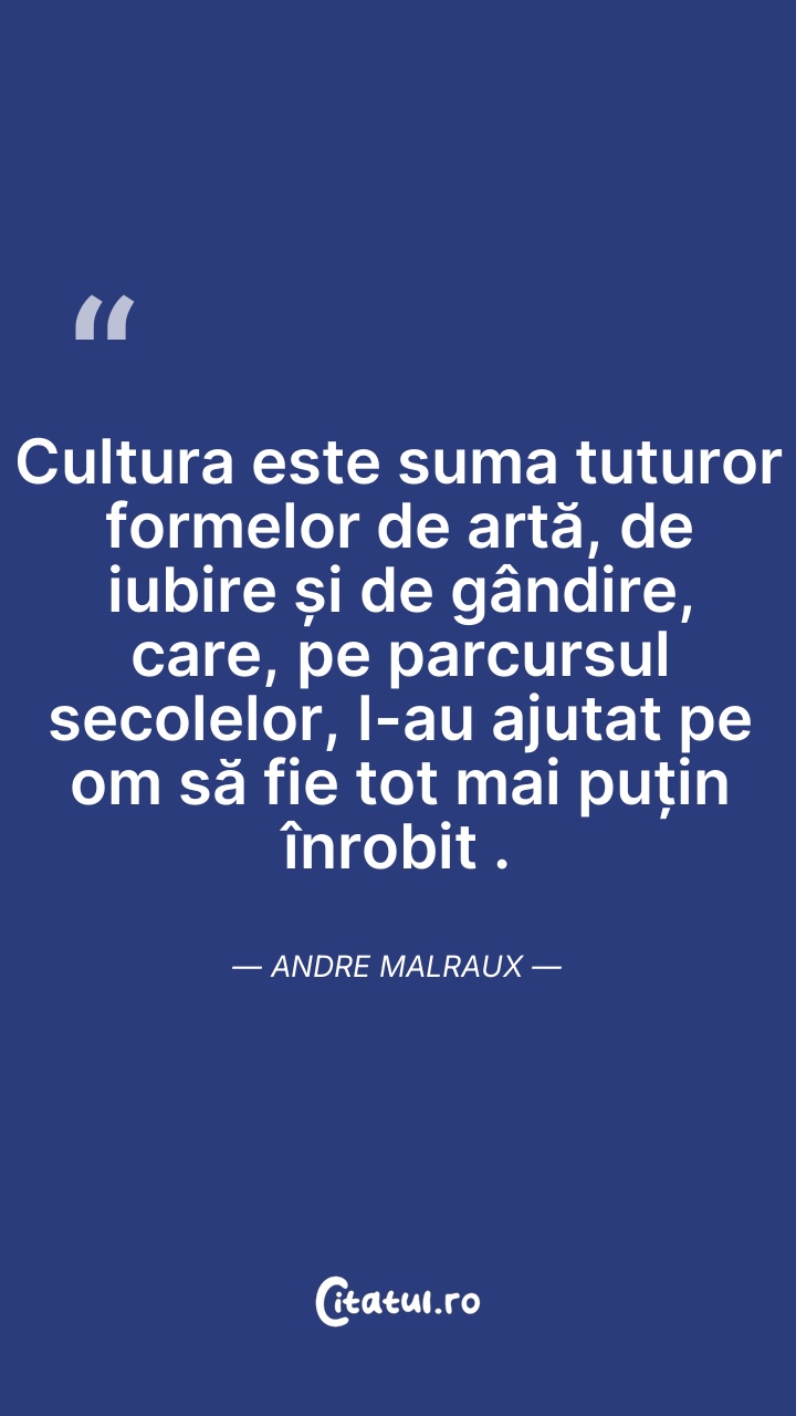 Cultura este suma tuturor formelor de artă, d ... Citește tot citatul >