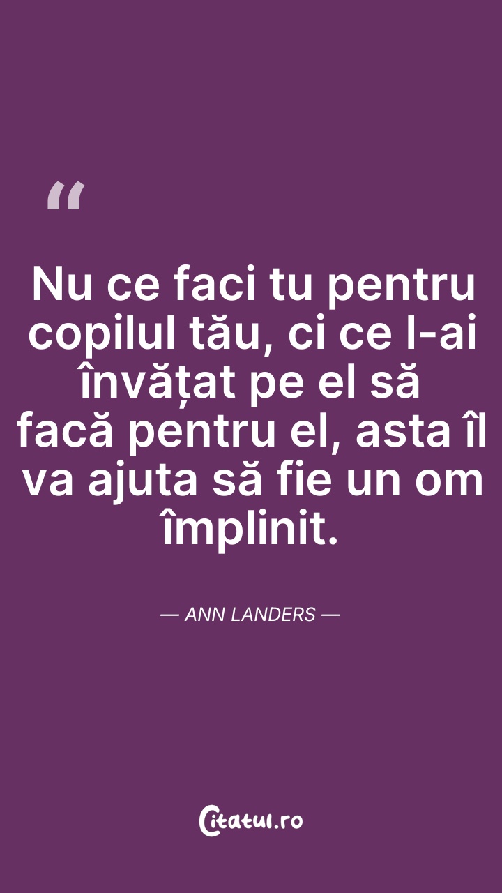 Nu ce faci tu pentru copilul tău, ci ce l-ai ... Citește tot citatul >