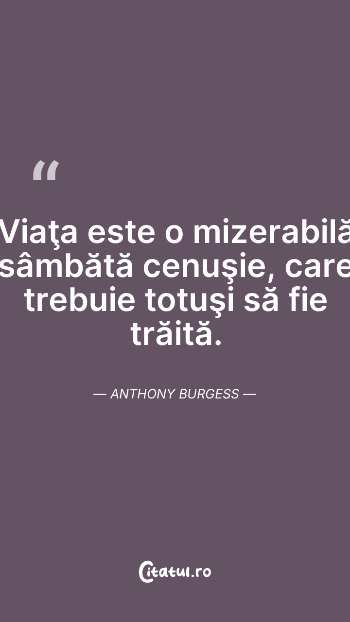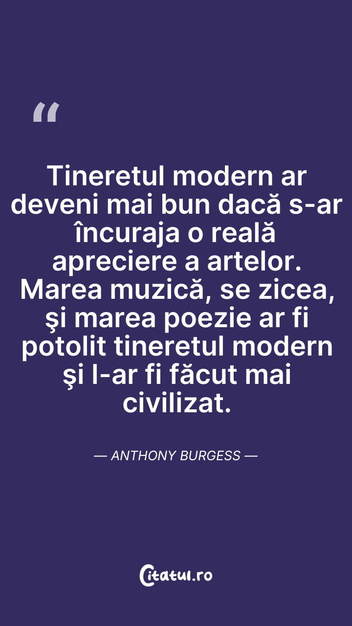 Anthony Burgess a fost un romancier și un critic englez, celebru pentru scrierea romanului său distopic „Portocala mecanică”, ecranizat de Stanley Kubrick. Este de asemenea un compozitor britanic.