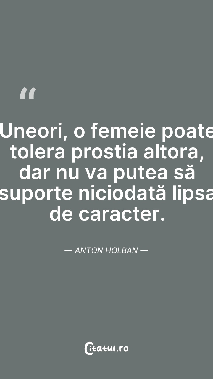 Uneori, o femeie poate tolera prostia altora, ... Citește tot citatul >