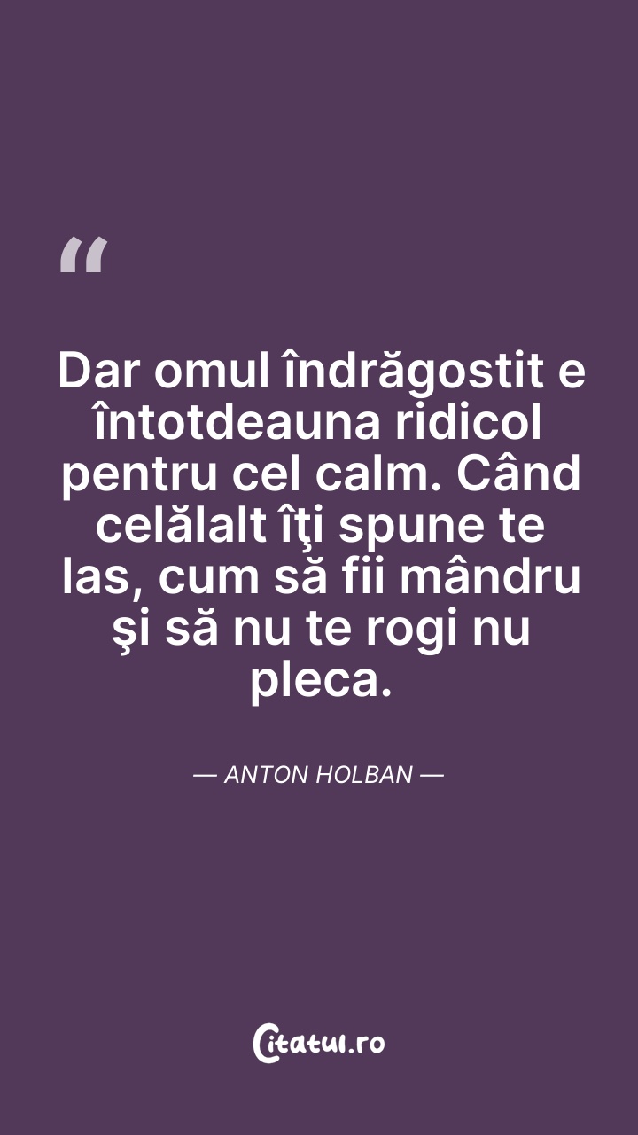 Dar omul îndrăgostit e întotdeauna ridicol pe ... Citește tot citatul >
