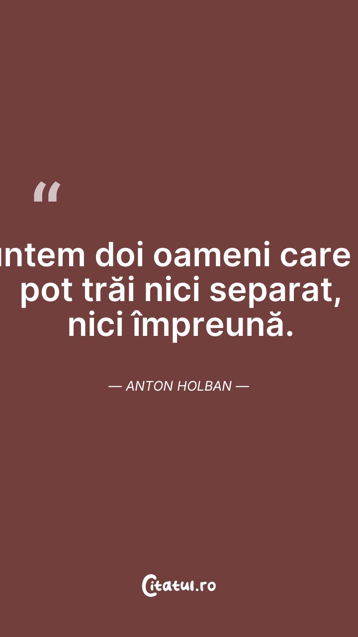 Suntem doi oameni care nu pot trăi nici separ ... Citește tot citatul >