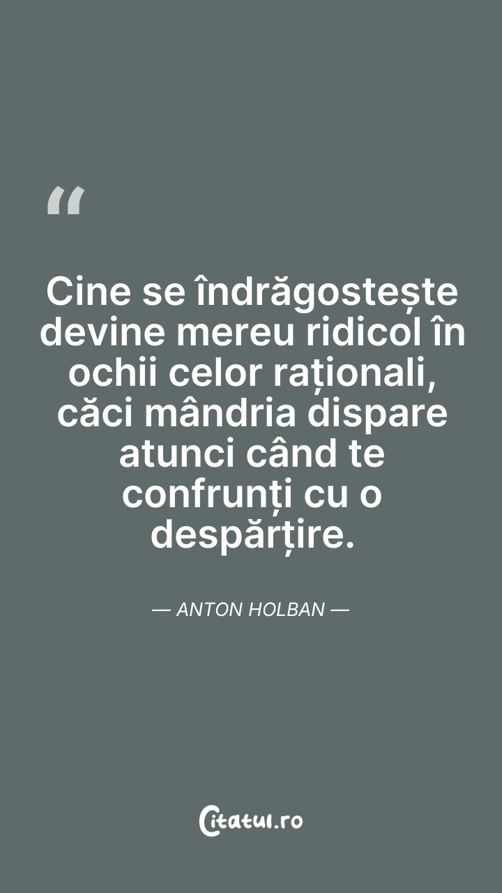 Cine se îndrăgostește devine mereu ridicol în ... Citește tot citatul >