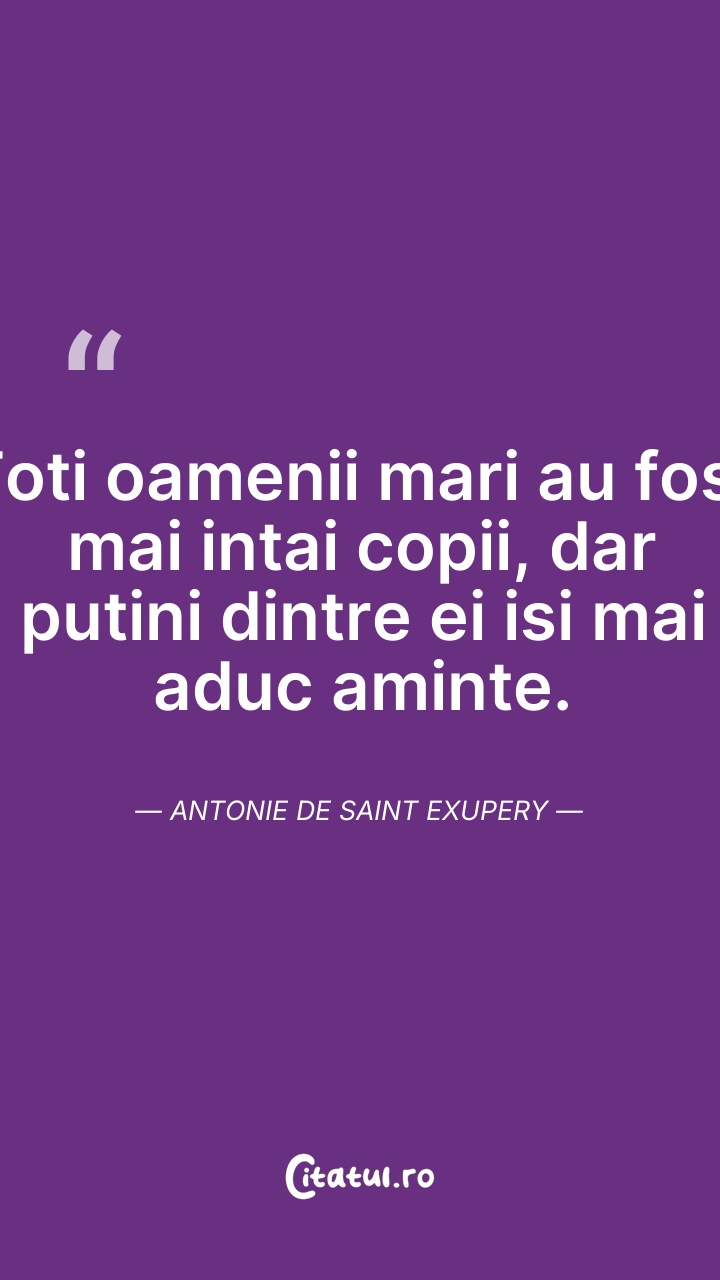Toti oamenii mari au fost mai intai copii, da ... Citește tot citatul >