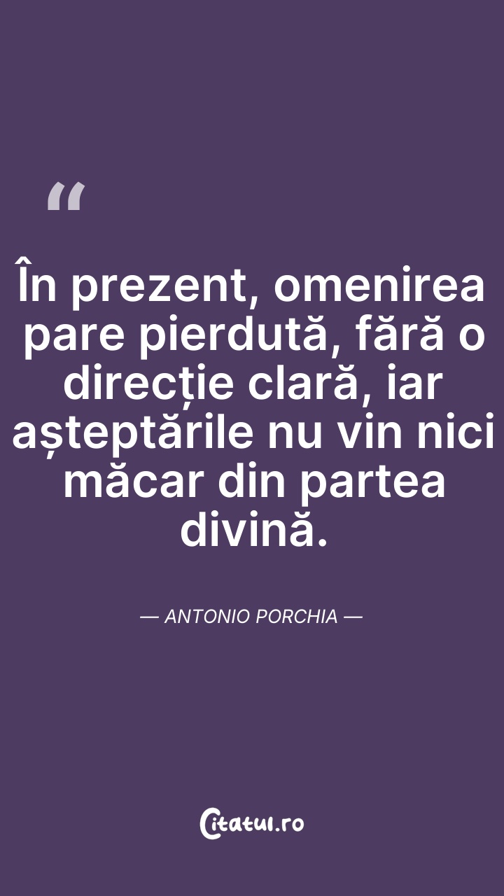 În prezent, omenirea pare pierdută, fără o di ... Citește tot citatul >