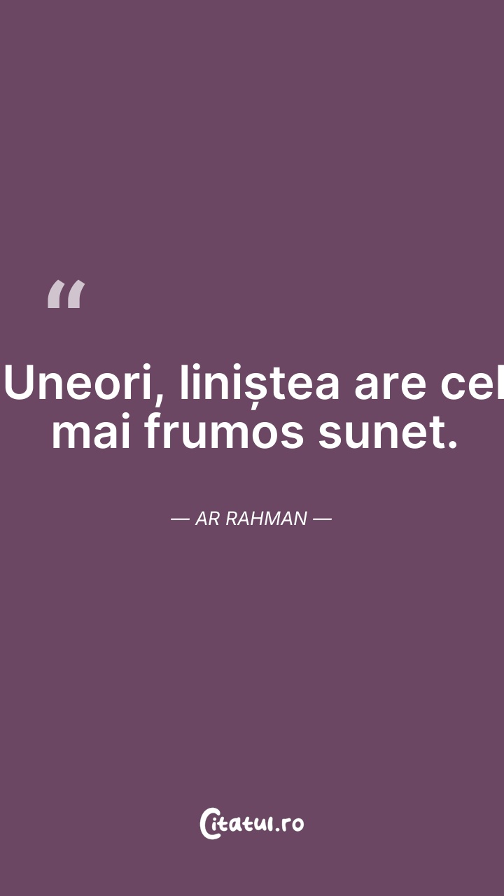 Uneori, liniștea are cel mai frumos sunet. AR ... Citește tot citatul >