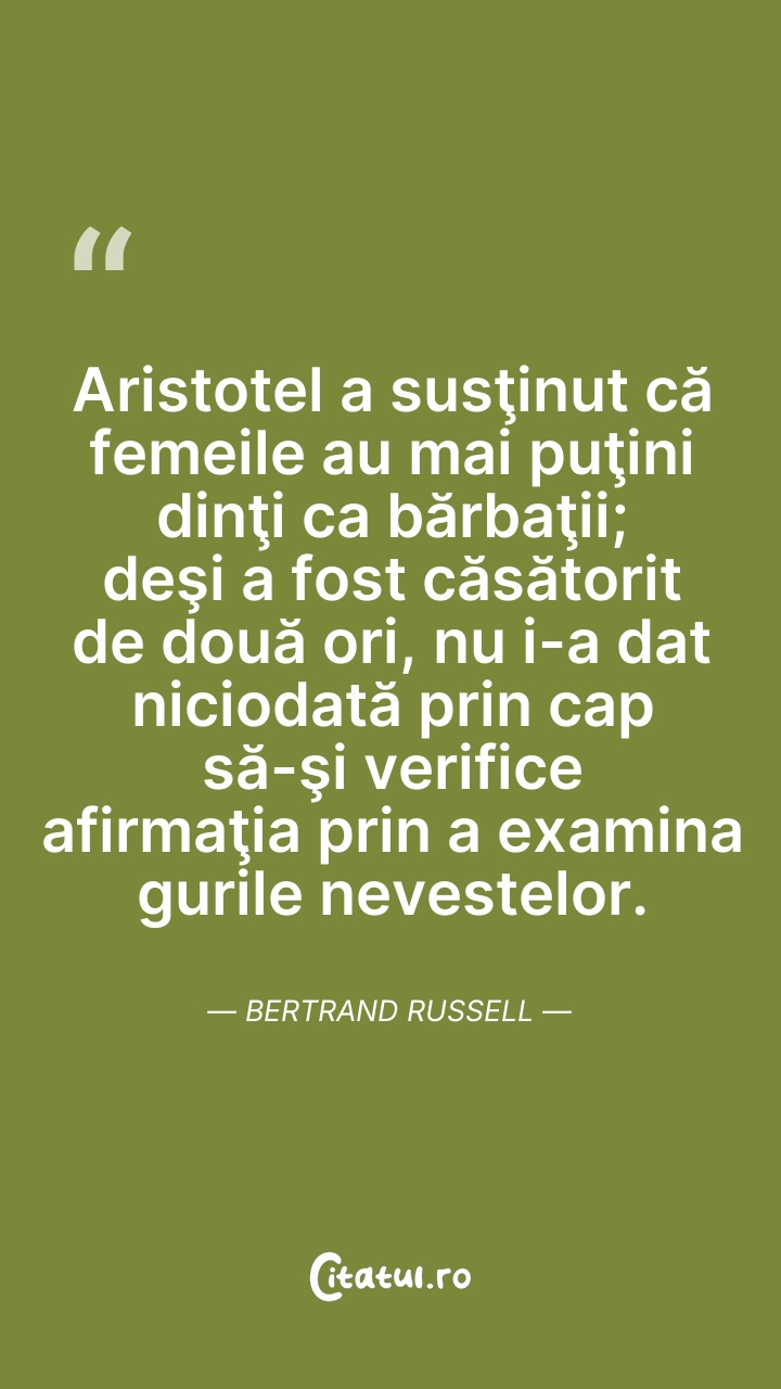 Aristotel a susţinut că femeile au mai puţini ... Citește tot citatul >
