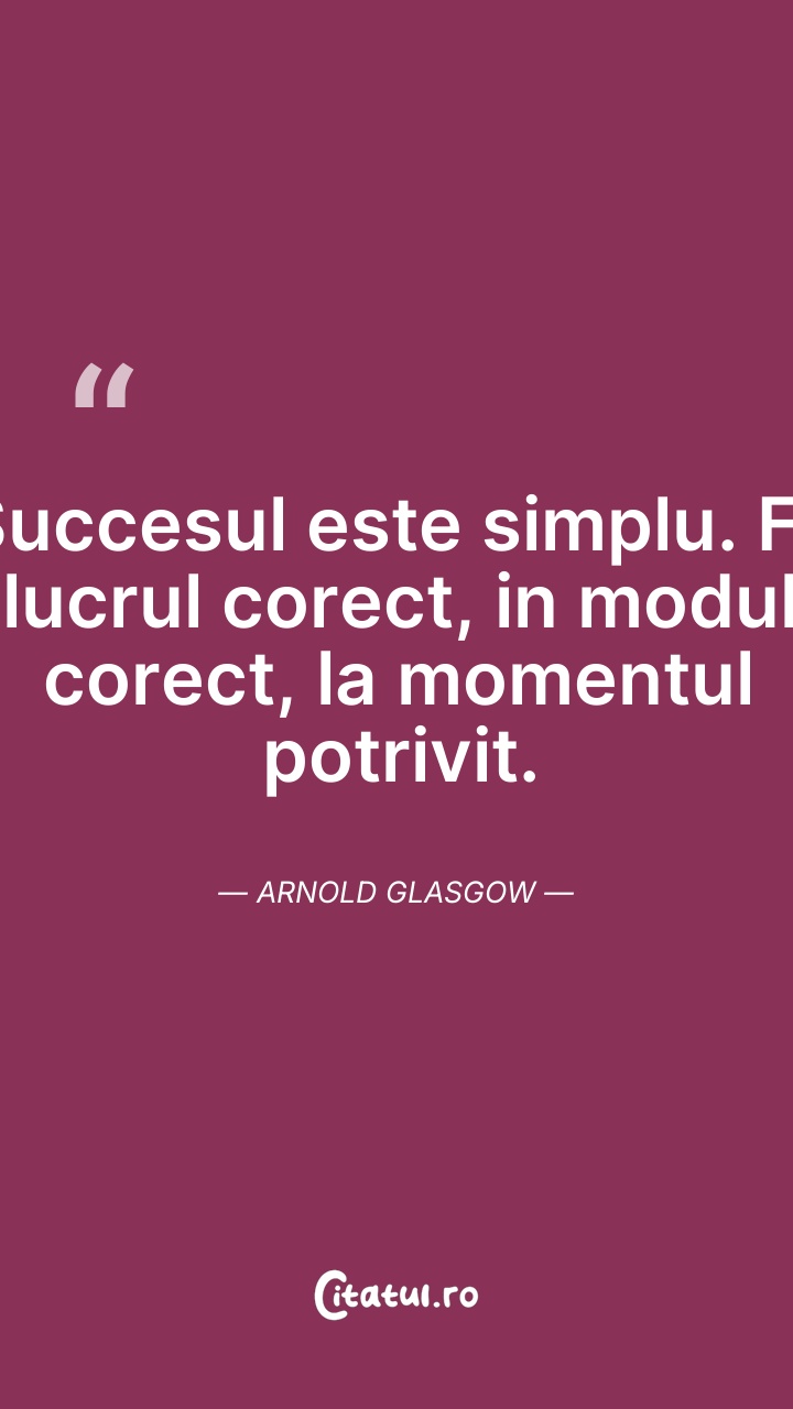 Succesul este simplu. Fa lucrul corect, in mo ... Citește tot citatul >