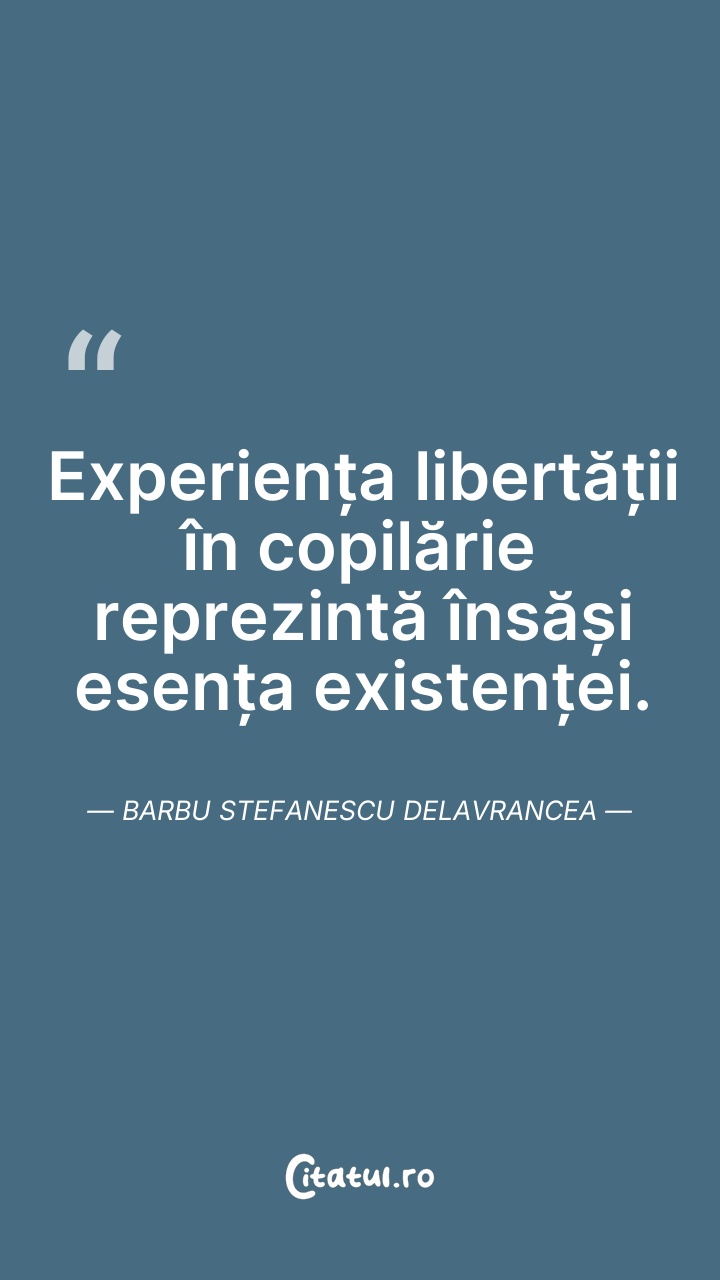 Experiența libertății în copilărie reprezintă ... Citește tot citatul >