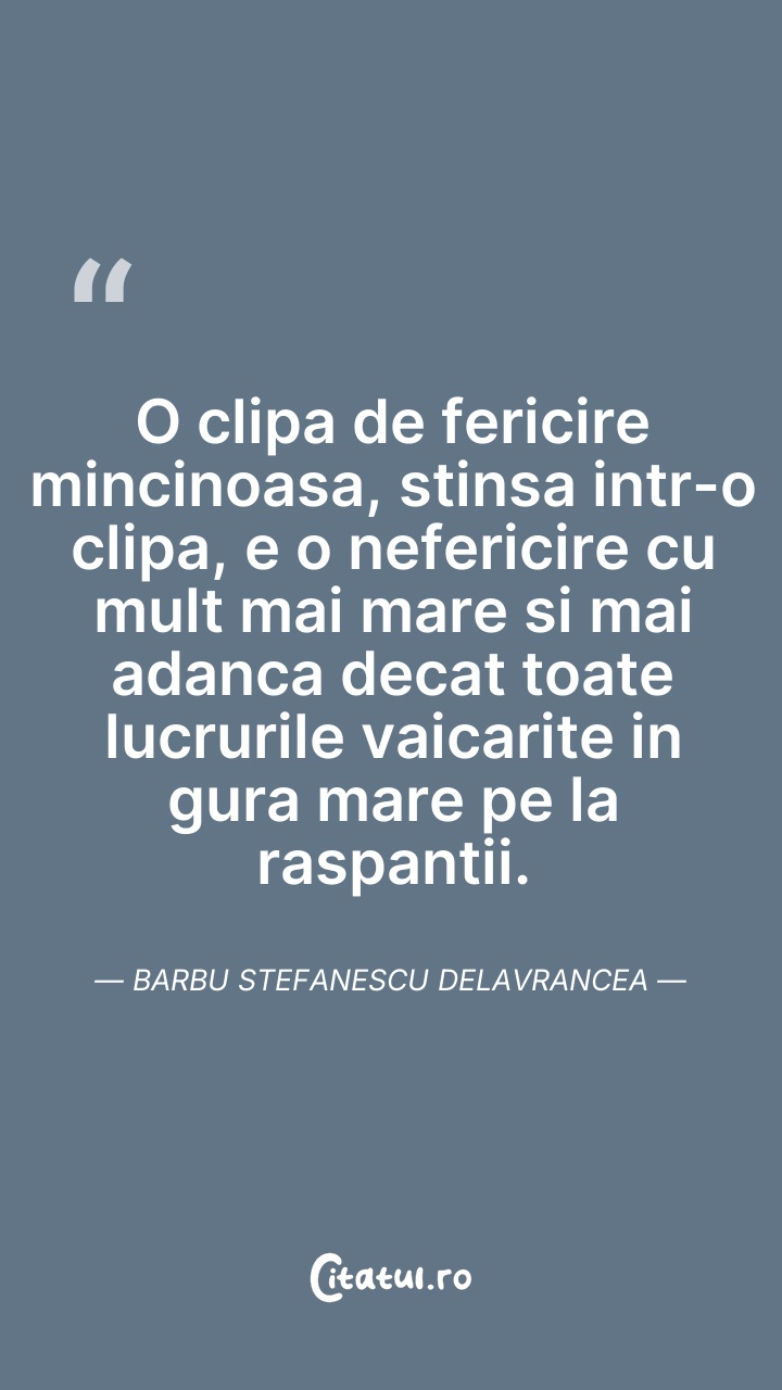 O clipa de fericire mincinoasa, stinsa intr-o ... Citește tot citatul >
