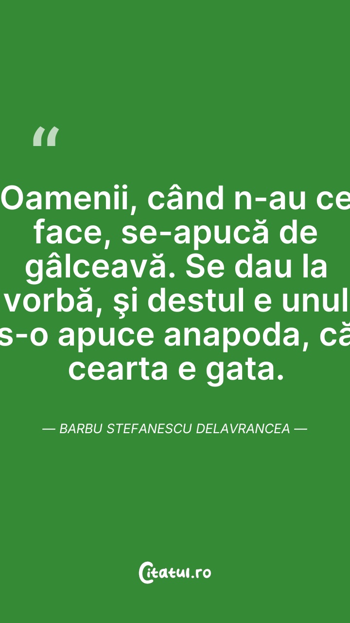 Oamenii, când n-au ce face, se-apucă de gâlce ... Citește tot citatul >