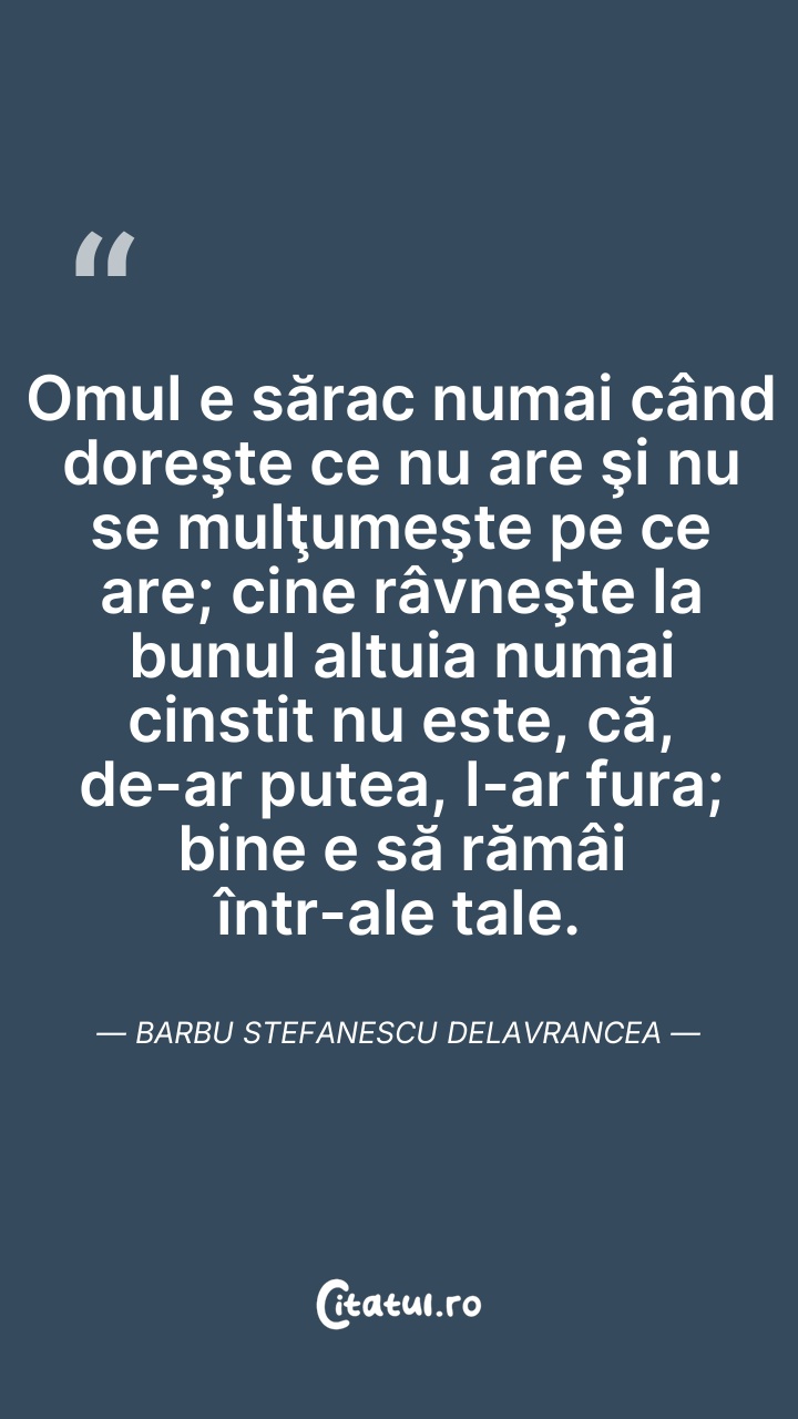 Omul e sărac numai când doreşte ce nu are şi ... Citește tot citatul >