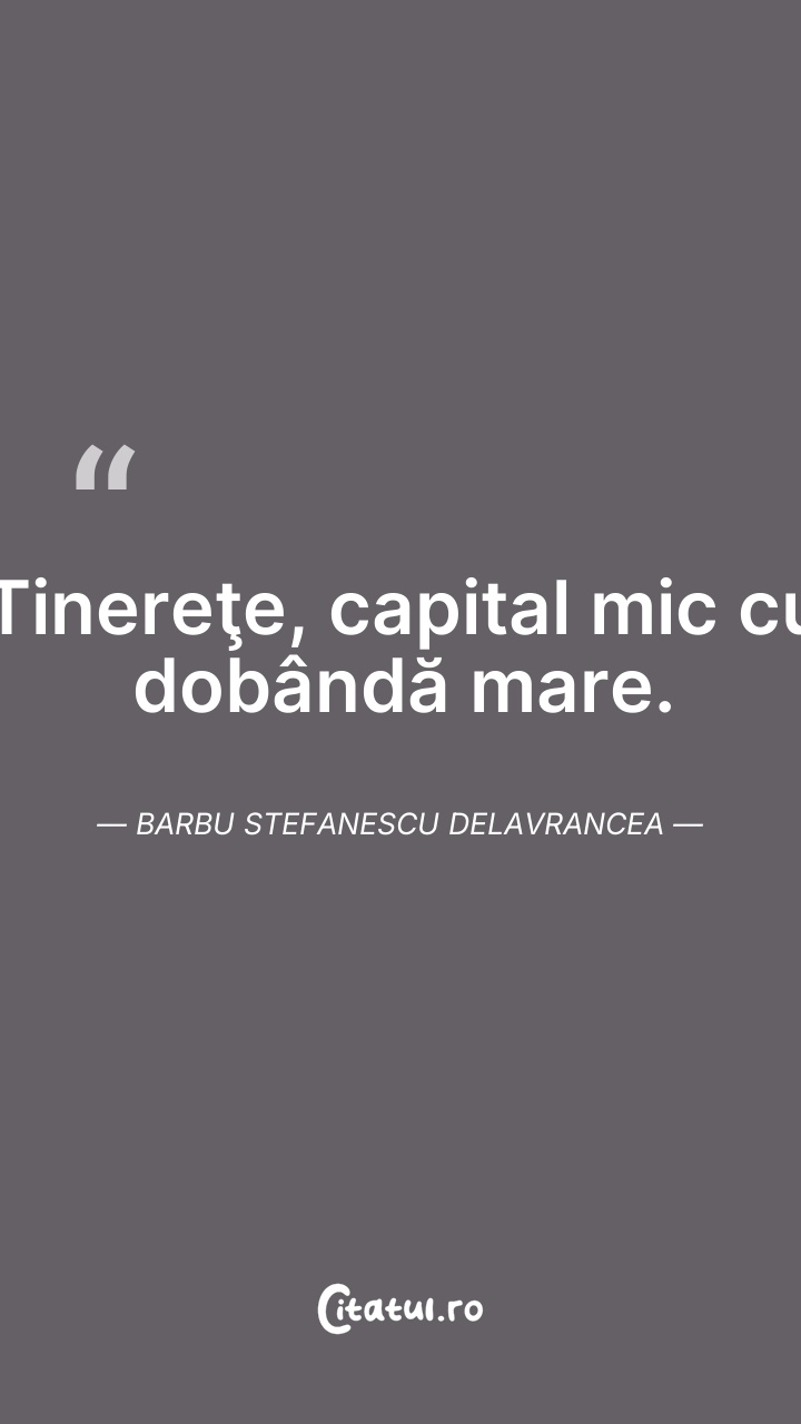 Tinereţe, capital mic cu dobândă mare. Barbu ... Citește tot citatul >