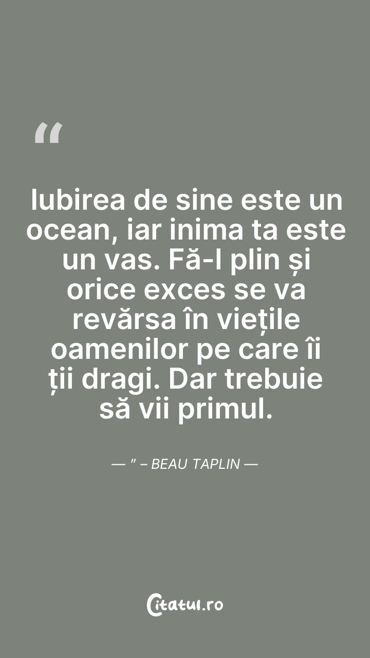 Iubirea de sine este un ocean, iar inima ta e ... Citește tot citatul >