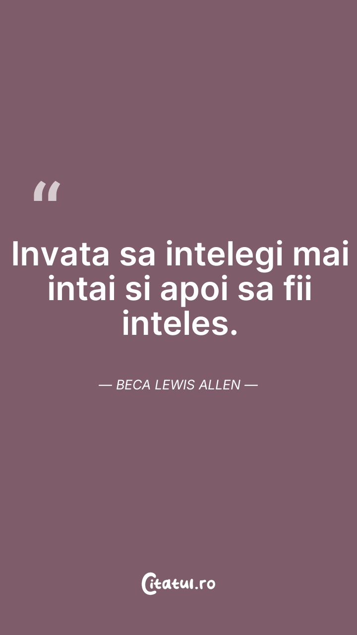 Invata sa intelegi mai intai si apoi sa fii i ... Citește tot citatul >