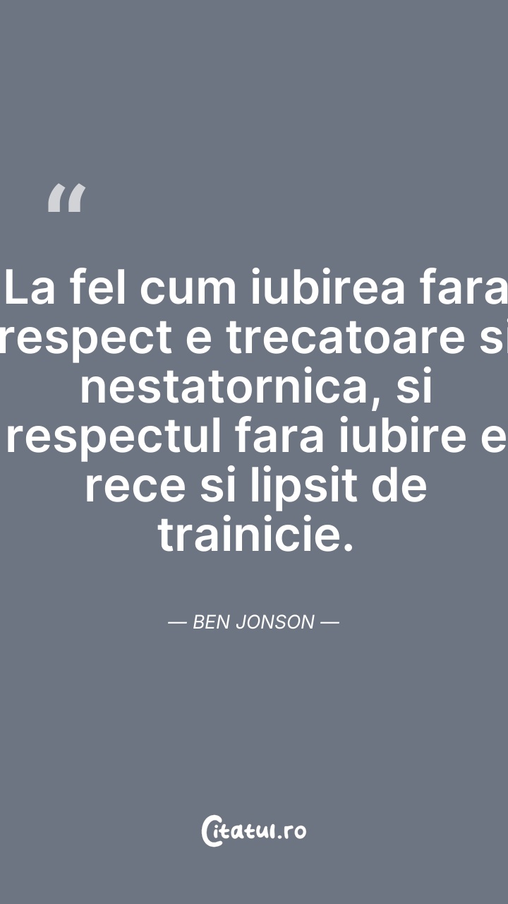 La fel cum iubirea fara respect e trecatoare ... Citește tot citatul >