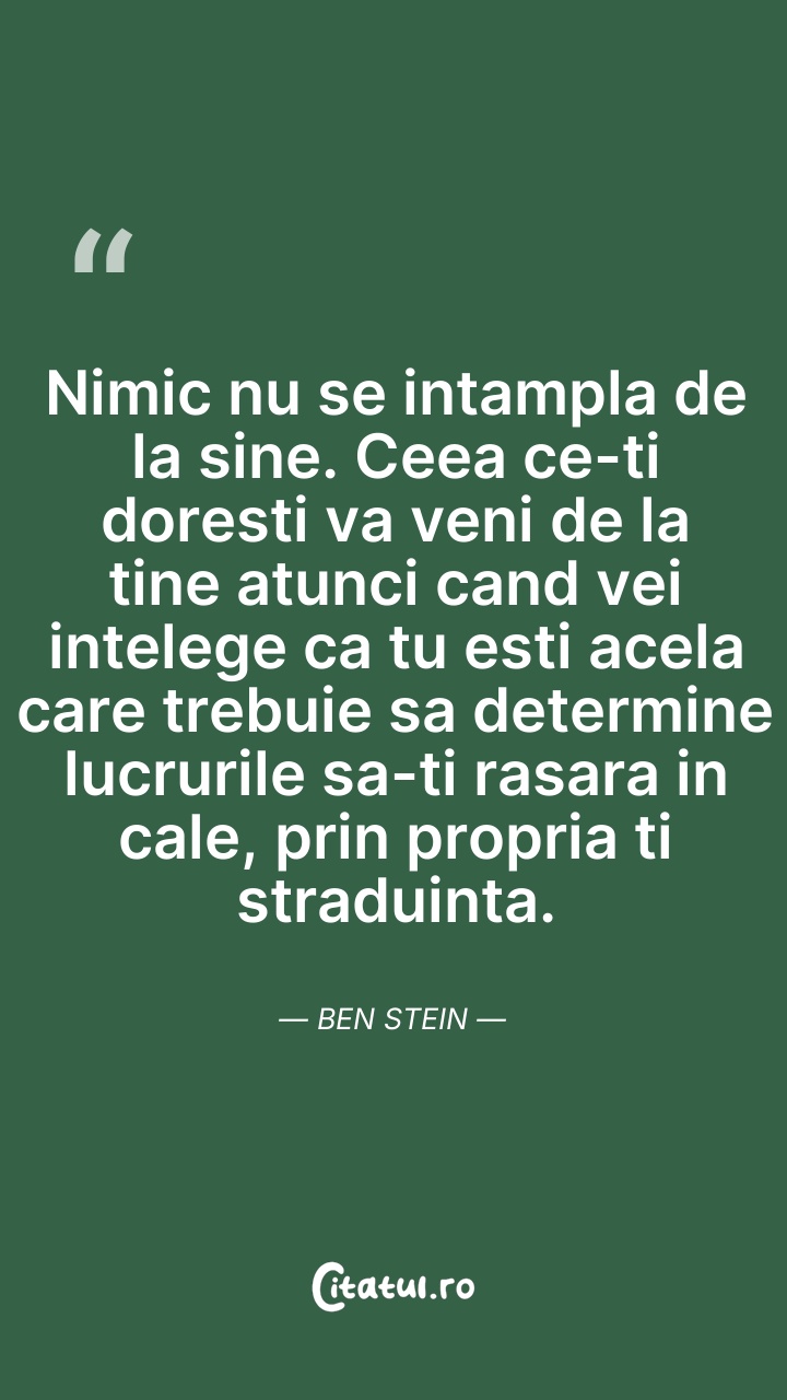 Nimic nu se intampla de la sine. Ceea ce-ti d ... Citește tot citatul >