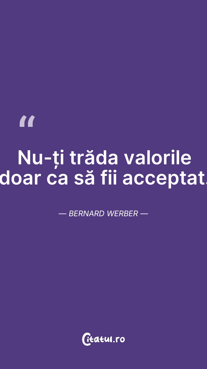 Nu-ți trăda valorile doar ca să fii acceptat. ... Citește tot citatul >