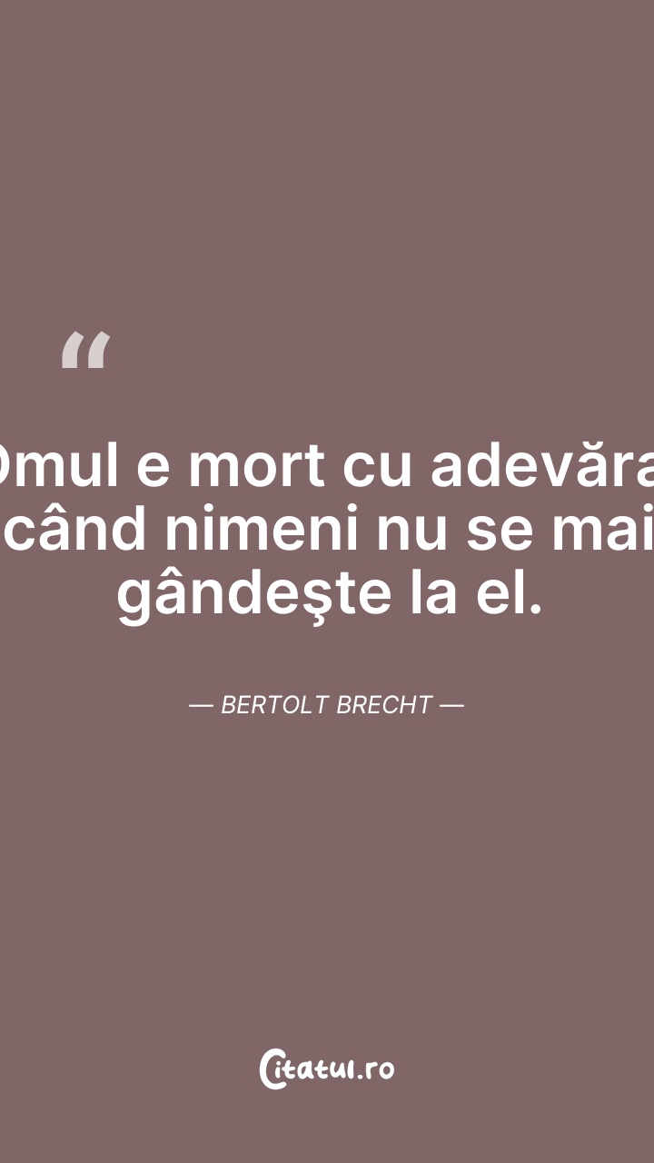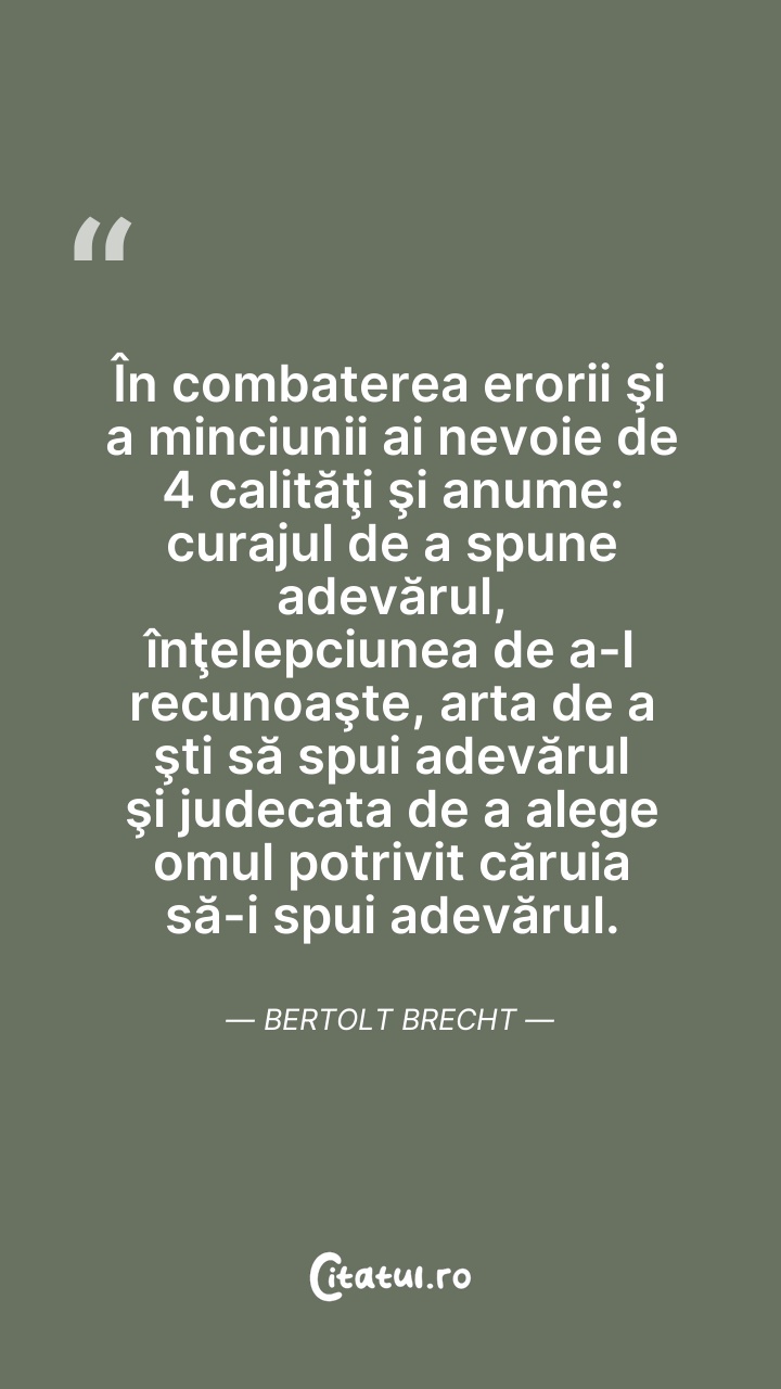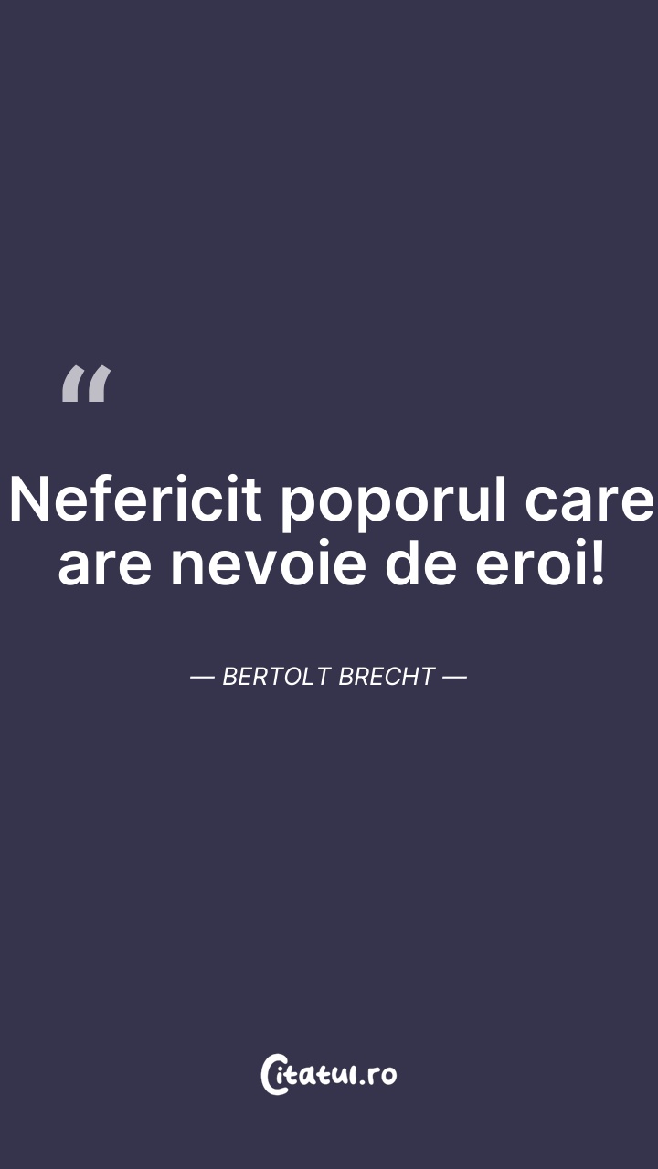 Bertolt Brecht, pseudonim literar Bert Brecht, născut Eugen Berthold Friedrich Brecht, a fost un dramaturg, poet și regizor german, inițial expresionist, întemeietor al instituției teatrale Berliner Ensemble, inițiator al „teatrului epic”, a promovat o nouă teorie și practică a teatrului, bazate pe efectul distanțării epice. A fost unul dintre cei care au revoluționat teatrul secolului 20.