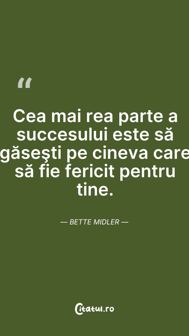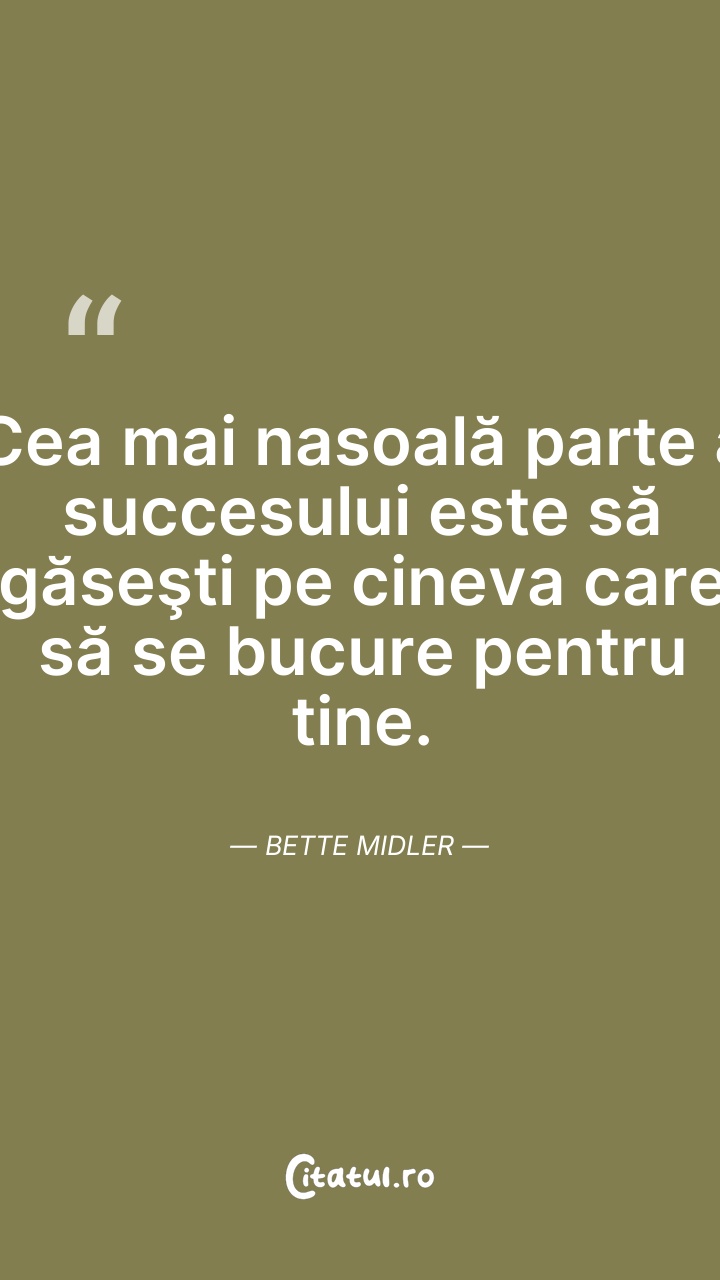 Bette Midler este o cântăreață, actriță și comediană americană. De-a lungul carierei a câștigat patru premii Grammy, patru Globuri de Aur, trei premii Emmy și un premiu Tony, fiind de două ori nominalizată la premiile Oscar.
