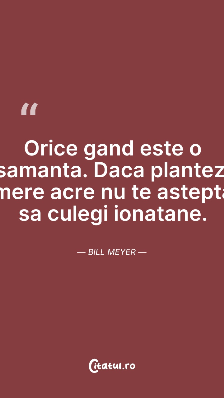 Orice gand este o samanta. Daca plantezi mere ... Citește tot citatul >