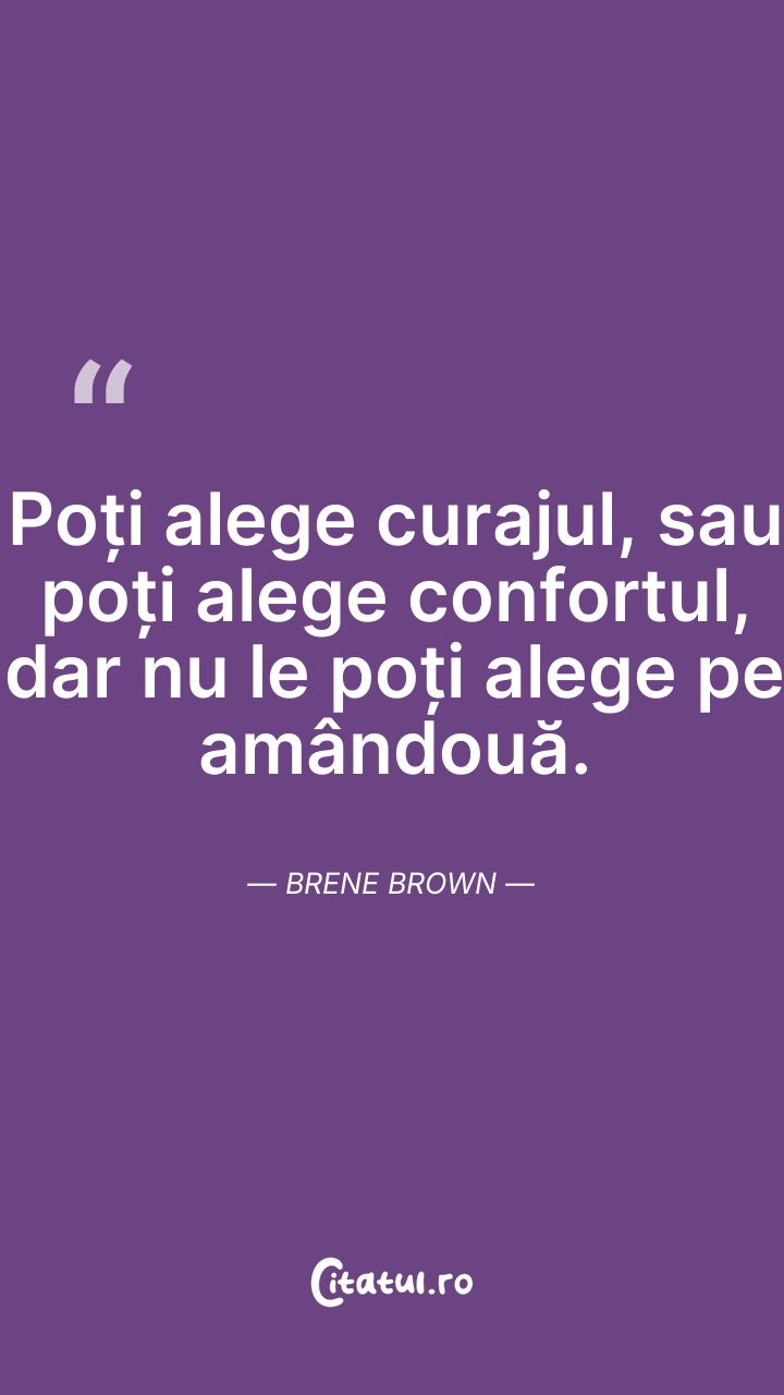 Poți alege curajul, sau poți alege confortul, ... Citește tot citatul >