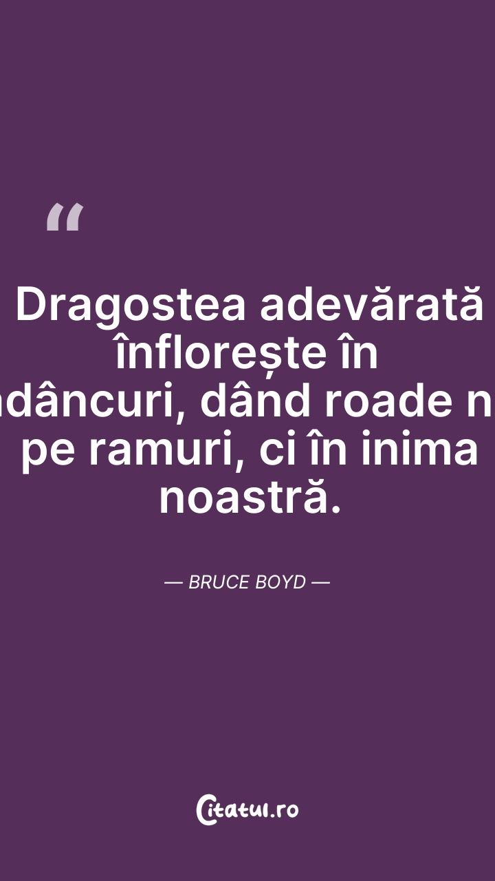 Dragostea adevărată înflorește în adâncuri, d ... Citește tot citatul >