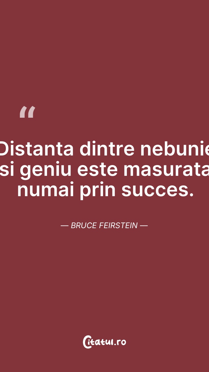 Distanta dintre nebunie si geniu este masurat ... Citește tot citatul >