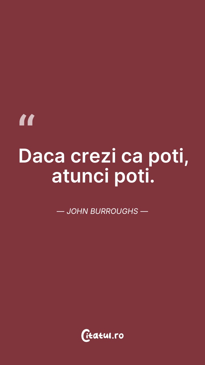 Daca crezi ca poti, atunci poti. John Burroug ... Citește tot citatul >