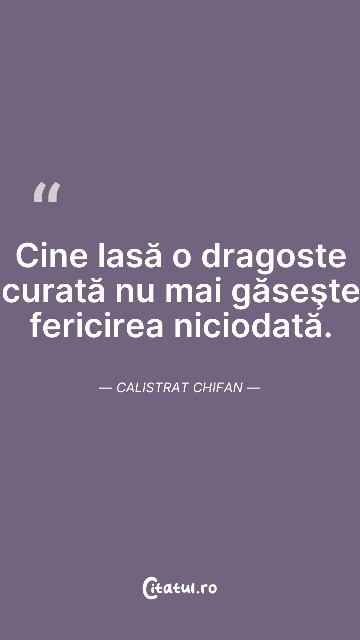Cine lasă o dragoste curată nu mai găseşte fe ... Citește tot citatul >