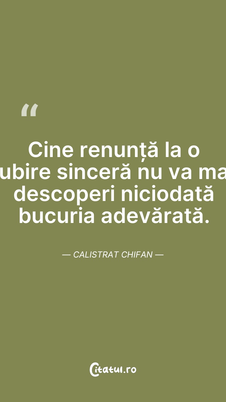 Cine renunță la o iubire sinceră nu va mai de ... Citește tot citatul >