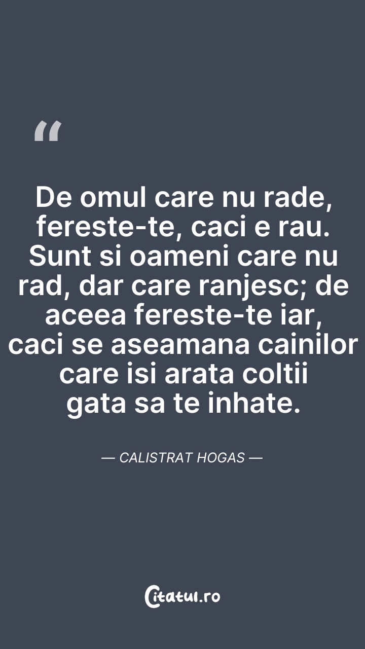 De omul care nu rade, fereste-te, caci e rau. ... Citește tot citatul >