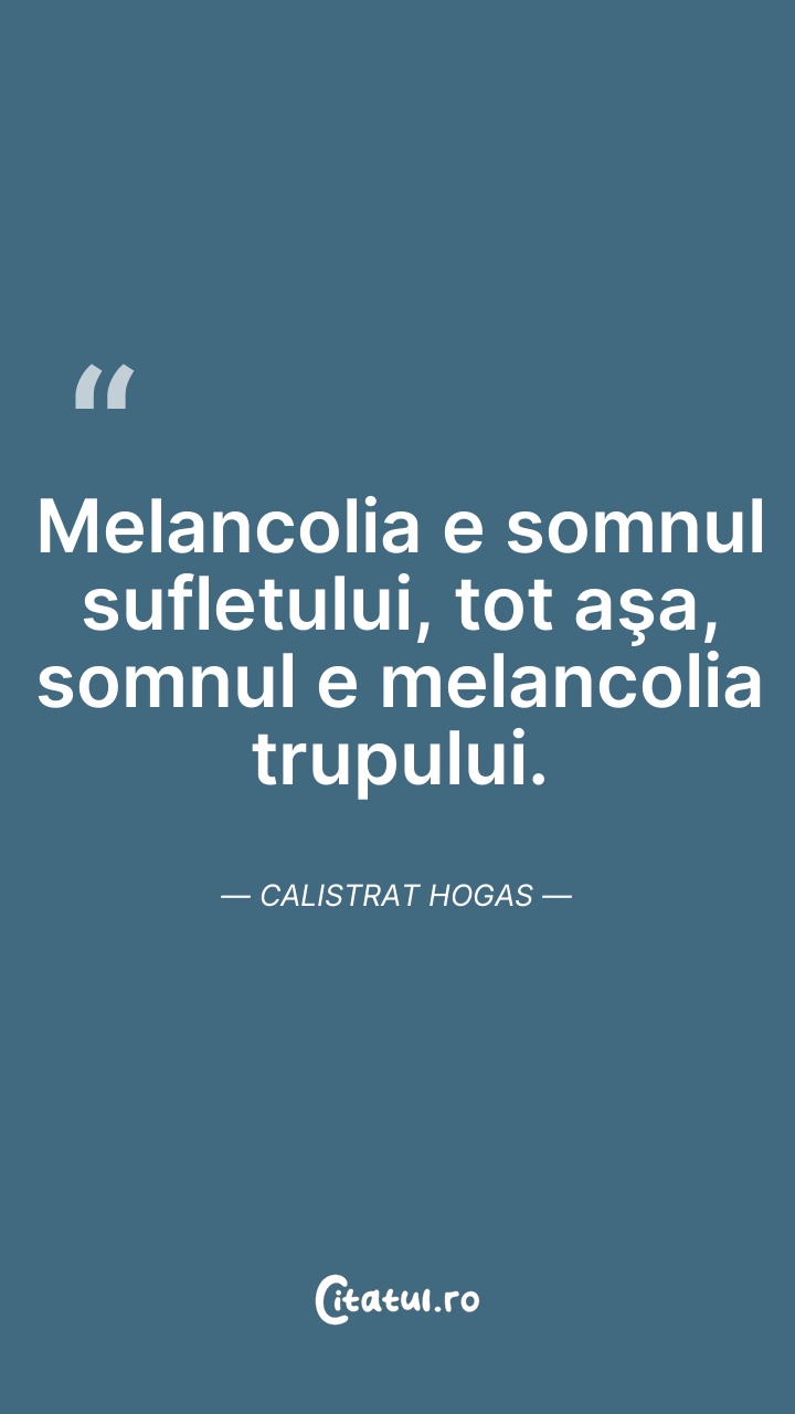 Melancolia e somnul sufletului, tot aşa, somn ... Citește tot citatul >