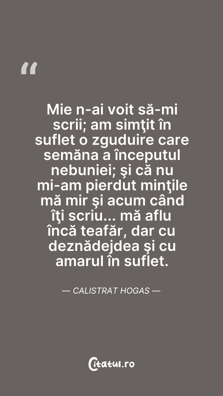 Mie n-ai voit să-mi scrii; am simţit în sufle ... Citește tot citatul >