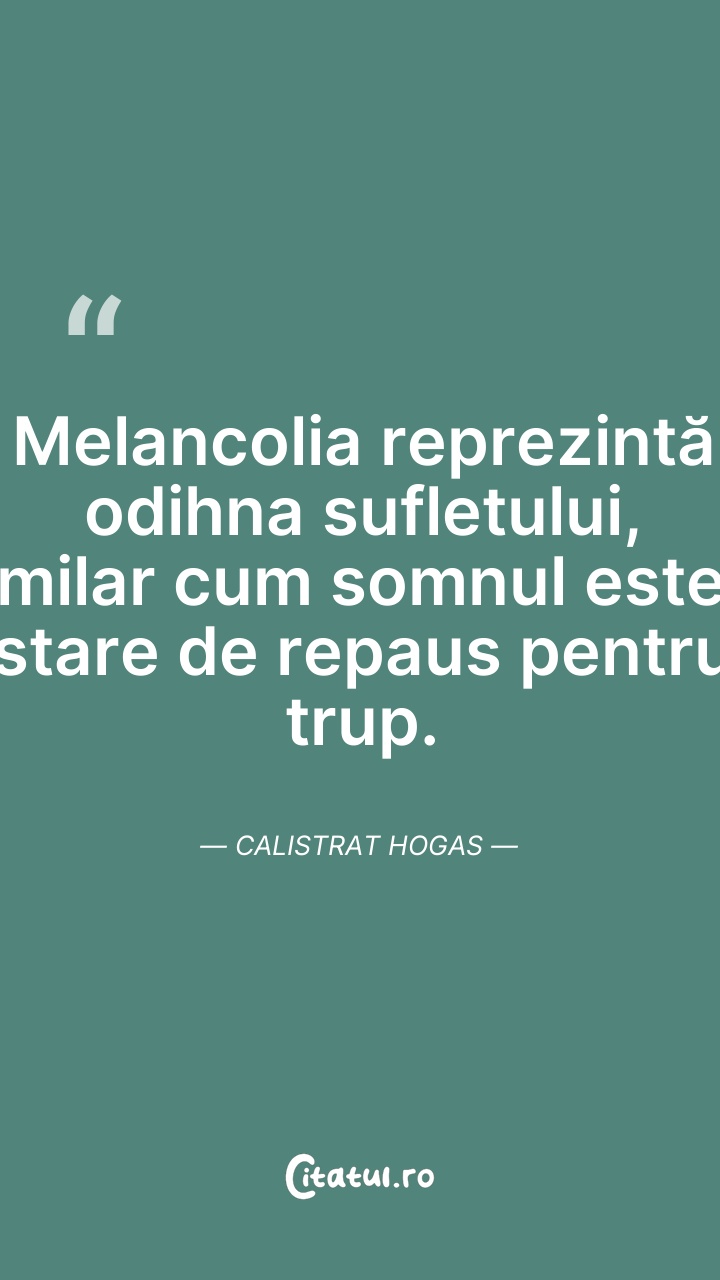 Melancolia reprezintă odihna sufletului, simi ... Citește tot citatul >