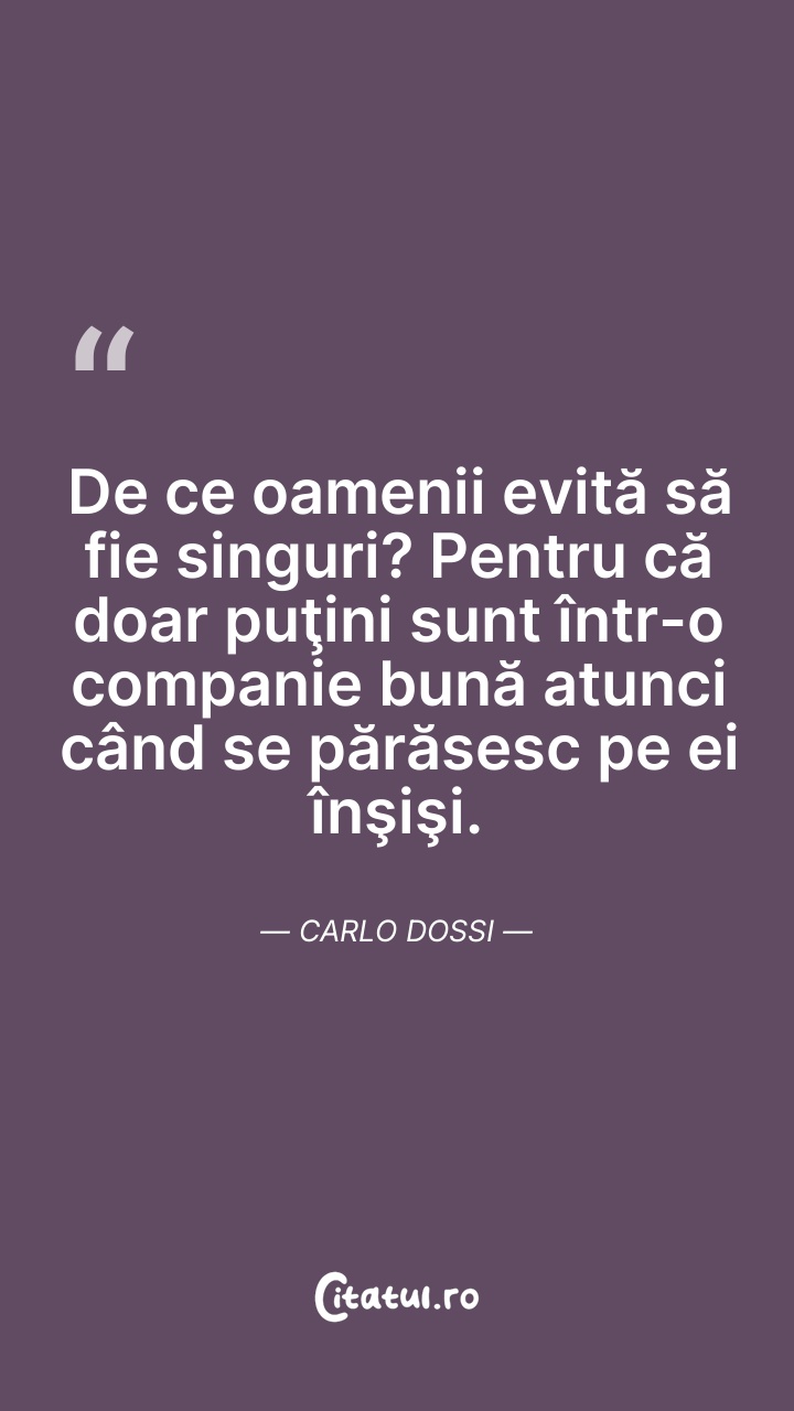 De ce oamenii evită să fie singuri? Pentru că ... Citește tot citatul >