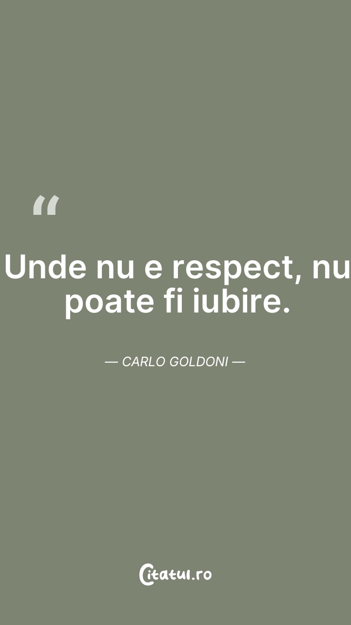 Unde nu e respect, nu poate fi iubire. Carlo ... Citește tot citatul >