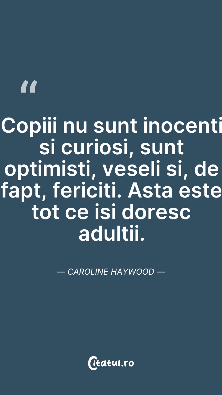 Copiii nu sunt inocenti si curiosi, sunt opti ... Citește tot citatul >