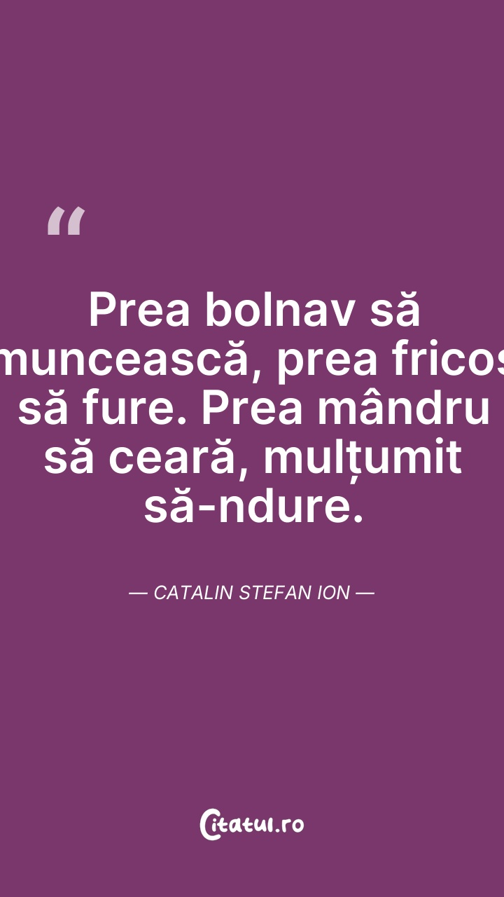 Prea bolnav să muncească, prea fricos să fure ... Citește tot citatul >
