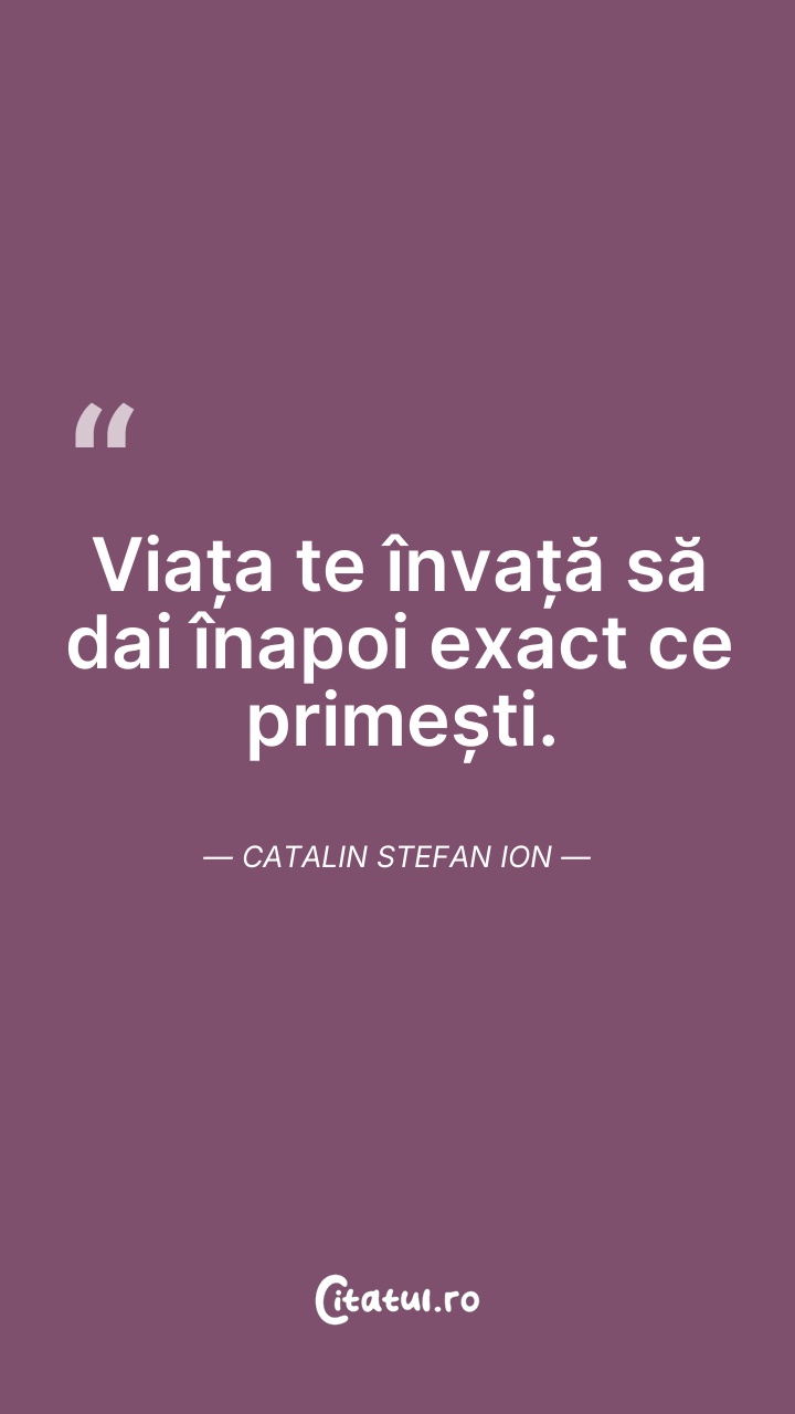 Viața te învață să dai înapoi exact ce primeș ... Citește tot citatul >