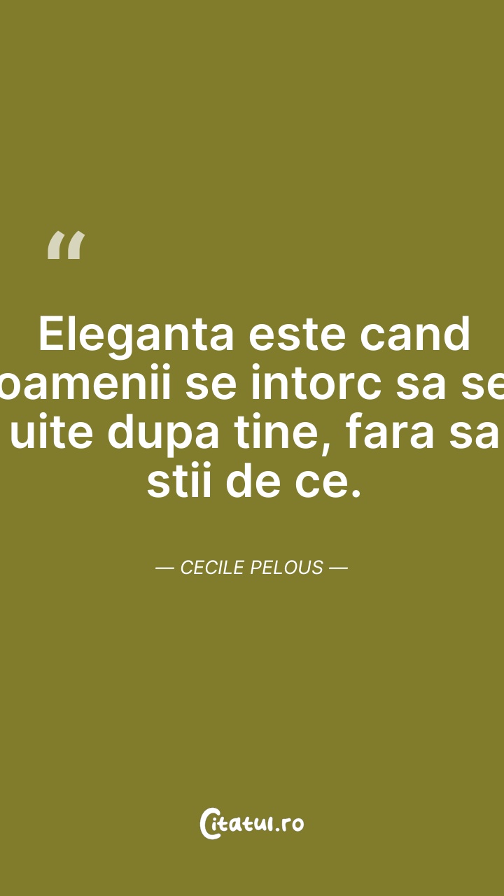 Eleganta este cand oamenii se intorc sa se ui ... Citește tot citatul >