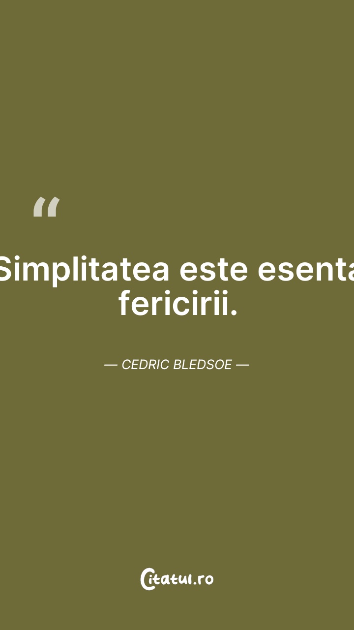 Simplitatea este esenta fericirii. Cedric Ble ... Citește tot citatul >