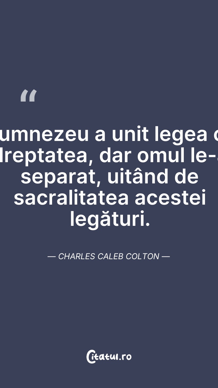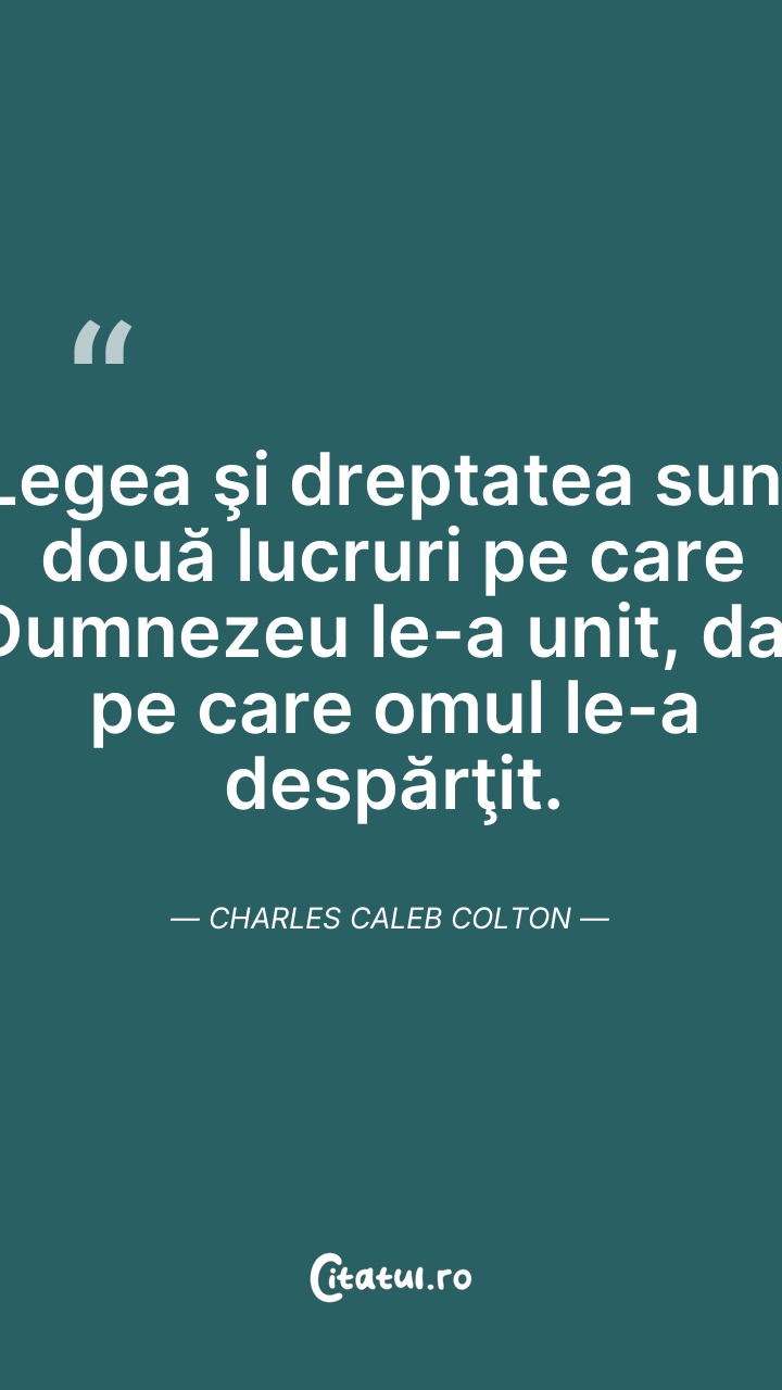 Dumnezeu a unit legea cu dreptatea, dar omul ... Citește tot citatul >