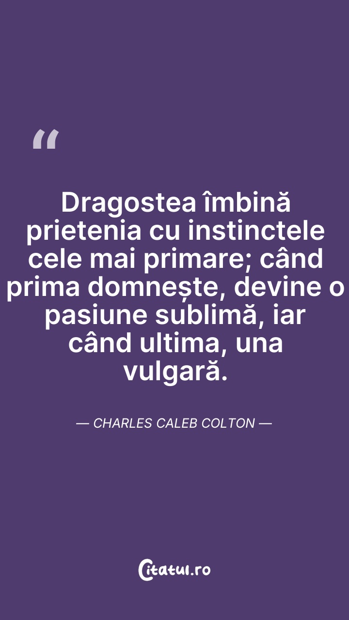 Dragostea îmbină prietenia cu instinctele cel ... Citește tot citatul >