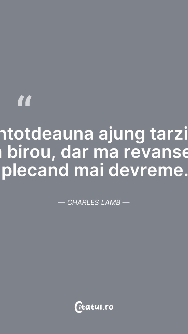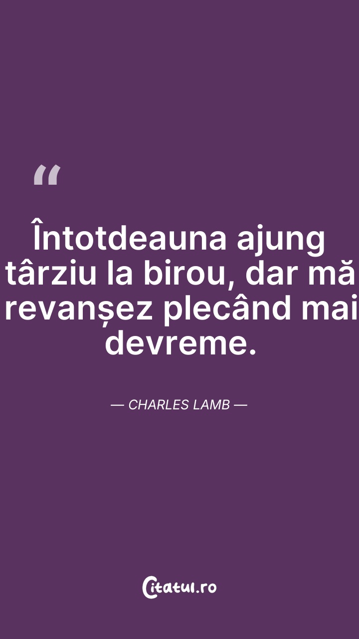 Intotdeauna ajung tarziu la birou, dar ma rev ... Citește tot citatul >