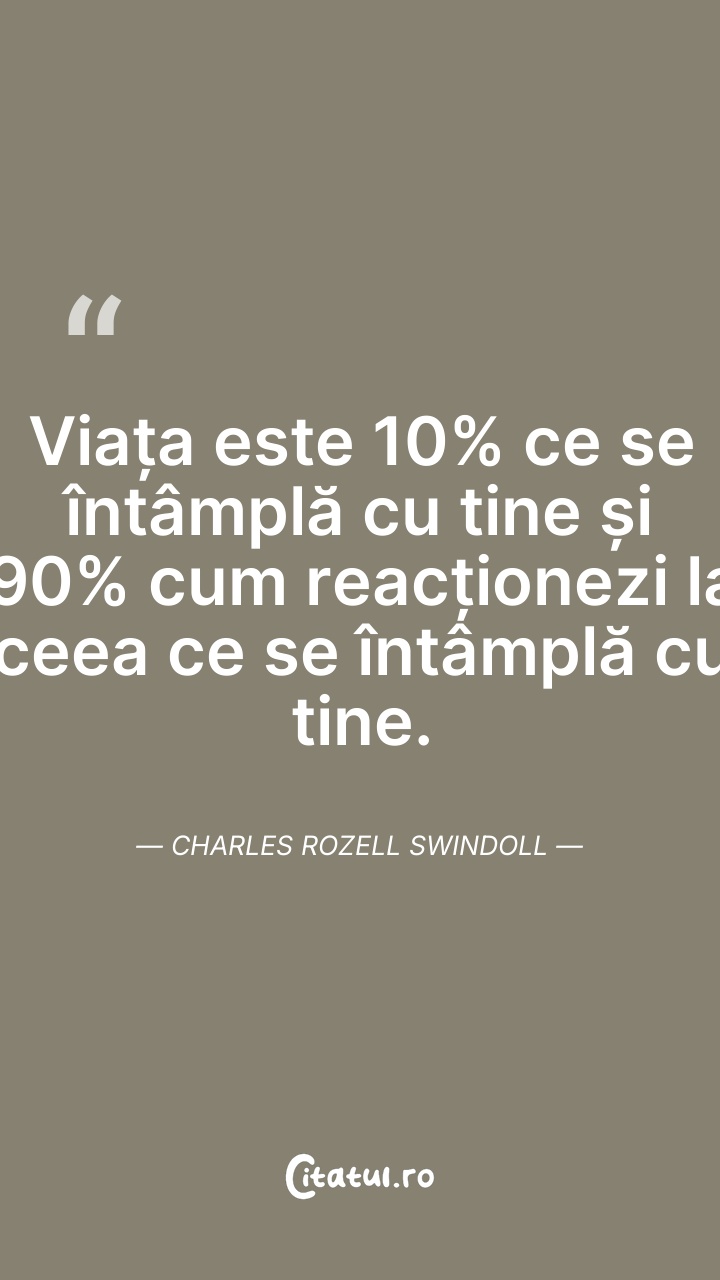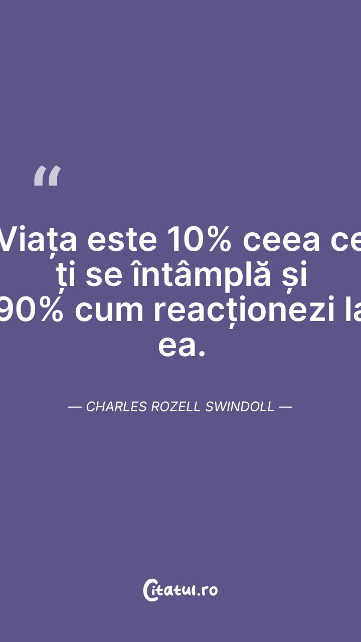 Viața este 10% ceea ce ți se întâmplă și 90% ... Citește tot citatul >